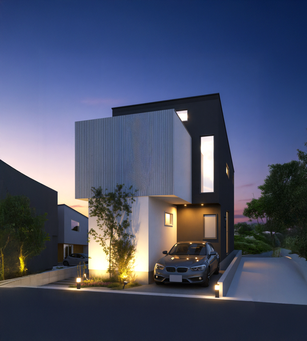 そして、白と黒のコントラストが映える塗り壁の外観。